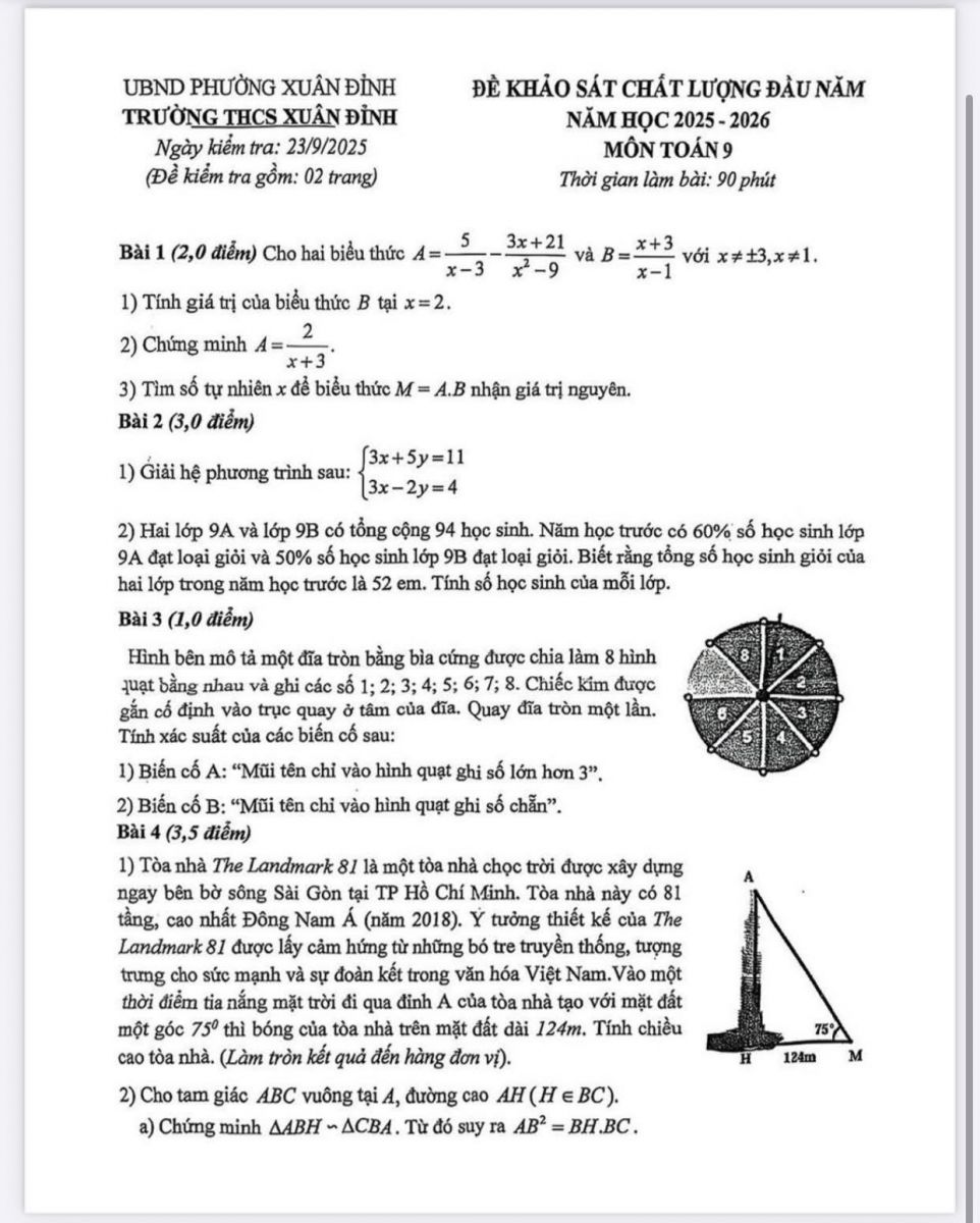 MATHX gửi quý phụ huynh và các em học sinh đề khảo sát chất lượng đầu năm trường THCS Xuân Đỉnh - Hà Nội năm 2025 - 2026