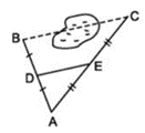 Giữa hai điểm B và C có một hồ nước (xem hình bên). Biết \( DE = 45\,m \). Tính khoảng cách giữa hai điểm B và C.