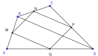 Cho tứ giác \( ABCD \) có \( M, N, P, Q \) lần lượt là trung điểm của các cạnh \( AB, BC, CD, DA \). Hỏi tứ giác \( MNPQ \) là hình gì? Vì sao?