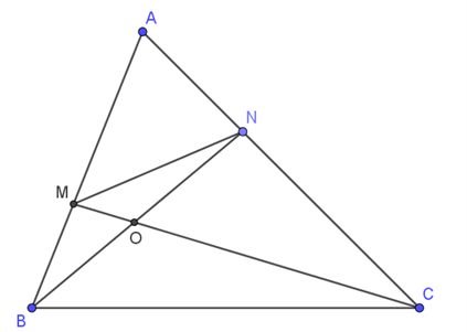 ⇒ \( \triangle BMO \sim \triangle CNO \) (g.g) ⇒ \( \dfrac{OM}{BO} = \dfrac{ON}{OC} \) (hai cạnh tương ứng)