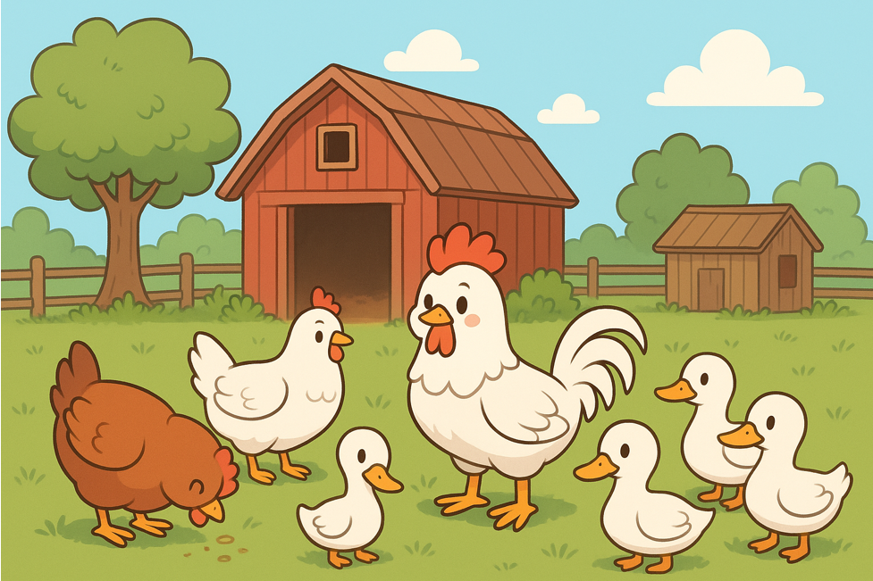 Câu 6. Một trang trại có 27 con gà và 54 con vịt. Hỏi trang trại đó có tất cả bao nhiêu con vật?