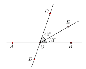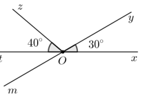 2) Quan sát hình vẽ sau đây, biết \( \widehat{xOy} = 30^\circ \), \( \widehat{zOt} = 40^\circ \).