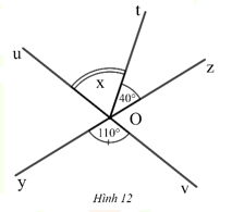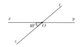 2) Cho hình vẽ bên. Biết \( \widehat{xOz} = 40^\circ \). Tìm số đo các góc \( \widehat{xOt} \); \( \widehat{yOt} \).
