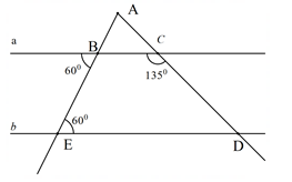 3) Cho hình vẽ. Biết \( \widehat{ABE} = 60^\circ \), \( \widehat{BED} = 60^\circ \), \( \widehat{BCD} = 135^\circ \).