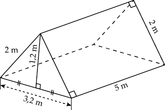 1) Một cái lều ở trại hè có dạng lăng trụ đứng tam giác (các số liệu ghi ở hình vẽ).