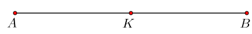 a) Cho hình 4, đoạn thẳng \( AB = 8\text{cm} \). K nằm giữa hai điểm A và B, biết \( BK = 4\text{cm} \). Tính độ dài đoạn thẳng AK. Cho biết K có phải là trung điểm của đoạn thẳng AB không? Vì sao?