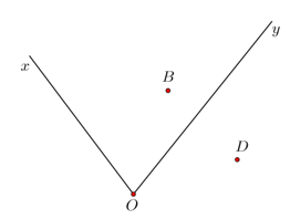 b) Quan sát hình 5 và cho biết điểm nằm trong, điểm nằm ngoài góc \( xOy \).
