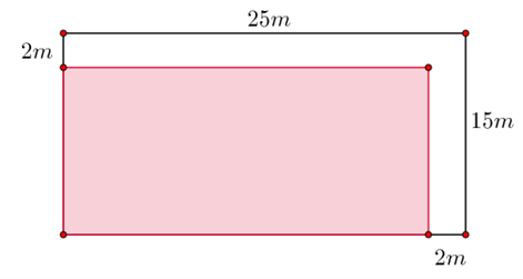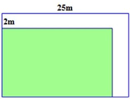 Một khu đất hình chữ nhật có chiều dài 45 m và chiều rộng 29 m, người ta làm một sân bóng hình chữ nhật với chiều dài 40 m và chiều rộng 24 m, phần đất còn lại ở bốn xung quanh để làm đường đi (hình bên dưới).