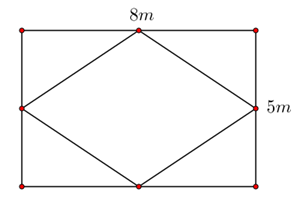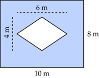 Một khu vườn hình chữ nhật có chiều dài \( 10\,\mathrm{m} \), chiều rộng \( 8\,\mathrm{m} \). Người ta xây một bồn hoa hình thoi có độ dài hai đường chéo là \( 4\,\mathrm{m} \) và \( 6\,\mathrm{m} \) để trồng hoa, còn lại làm lối đi.