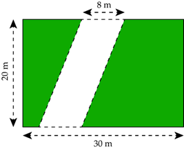 Người ta dự định mở một con đường cắt qua mảnh vườn hình chữ nhật với các kích thước được cho trên hình vẽ dưới đây.