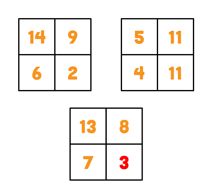 Đáp án: Số cần điền vào dấu hỏi chấm là 3. Tổng bốn số ở mỗi hình tách biệt đều bằng 31.