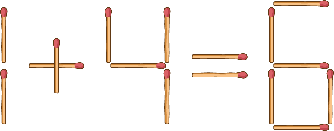 Hãy di chuyển 2 que diêm để được phép tính đúng