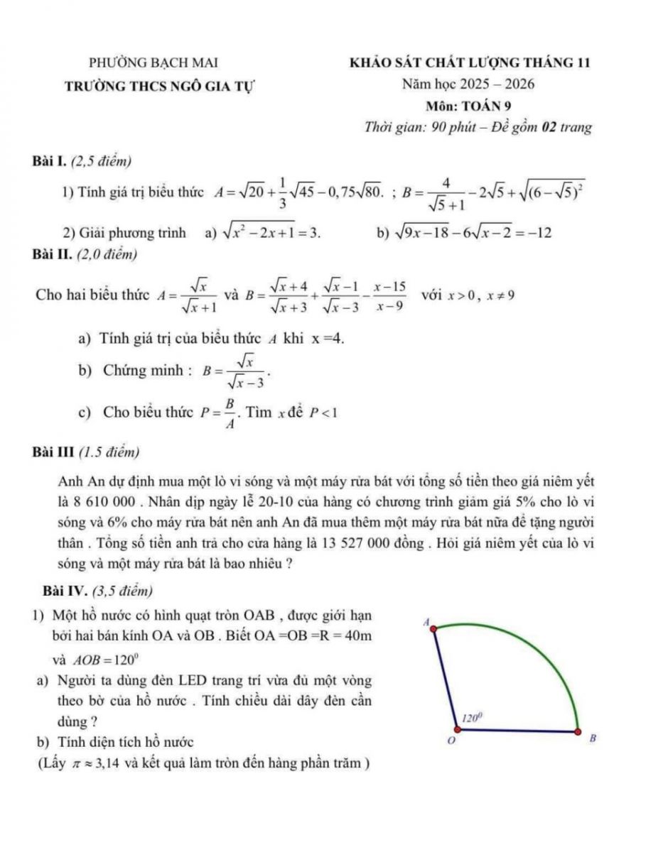MATHX gửi tới các em Đề khảo sát chất lượng tháng 11 trường THCS Ngô Gia Tự năm 2025 - 2026