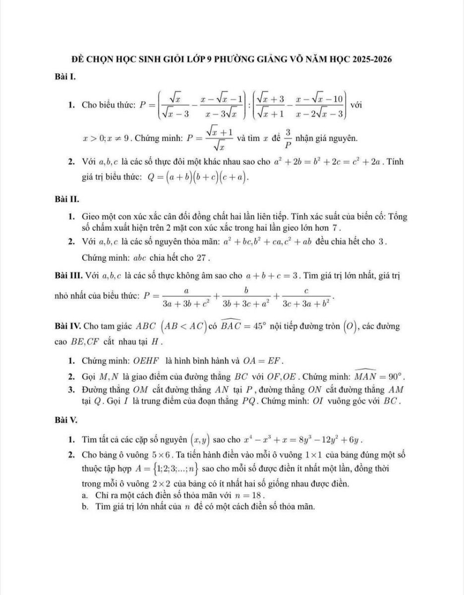 Lời giải đề thi chọn học sinh giỏi phường Giảng Võ năm 2025 - 2026: