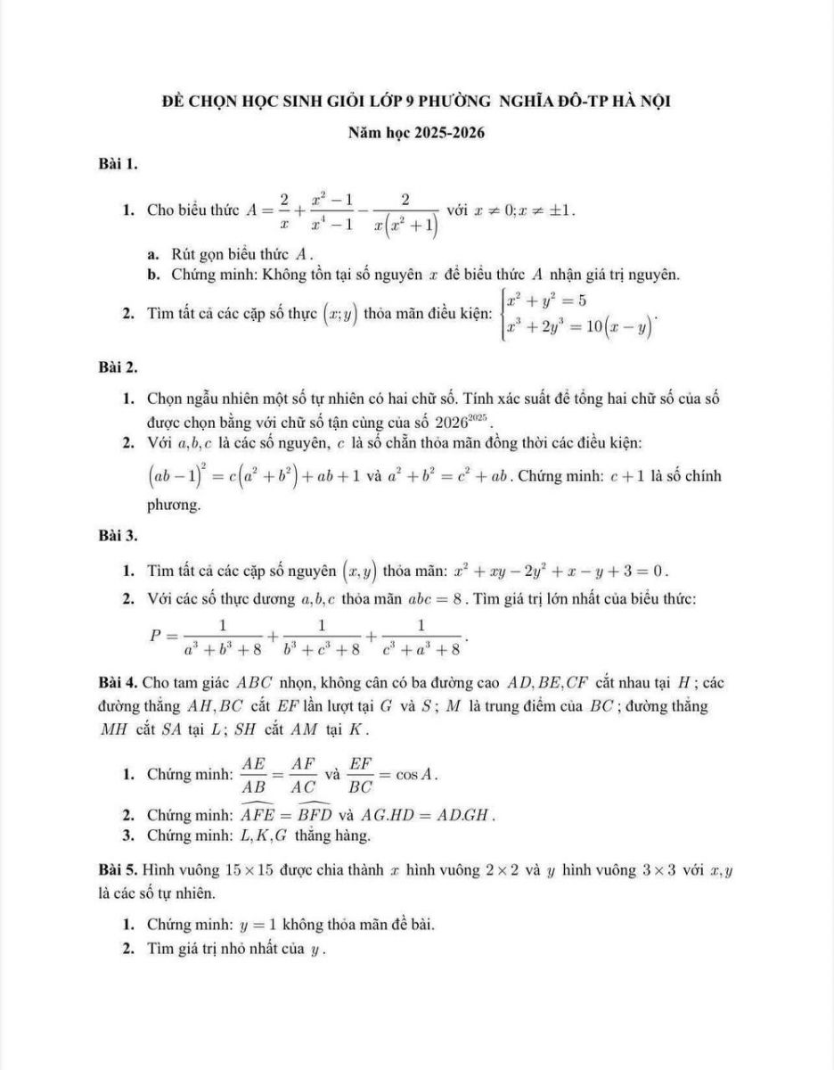 Lời giải đề thi chọn học sinh giỏi phường Nghĩa Đô năm 2025 - 2026: