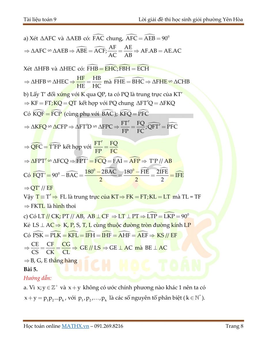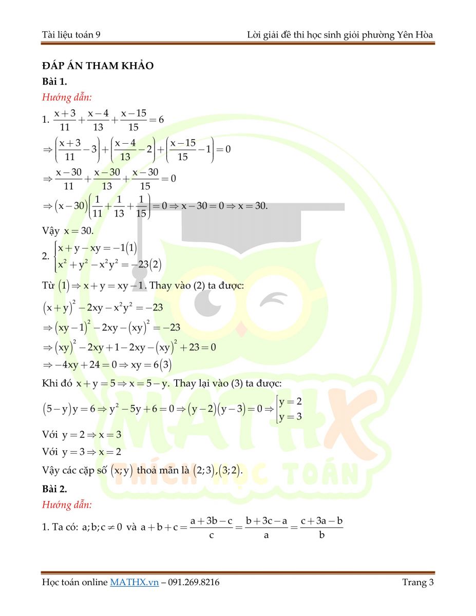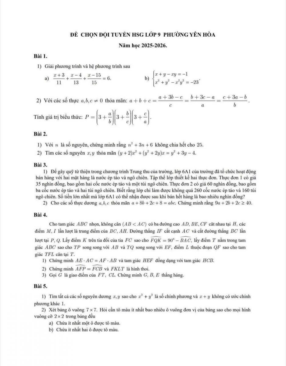 Lời giải đề thi chọn học sinh giỏi phường Yên Hòa năm 2025 - 2026: