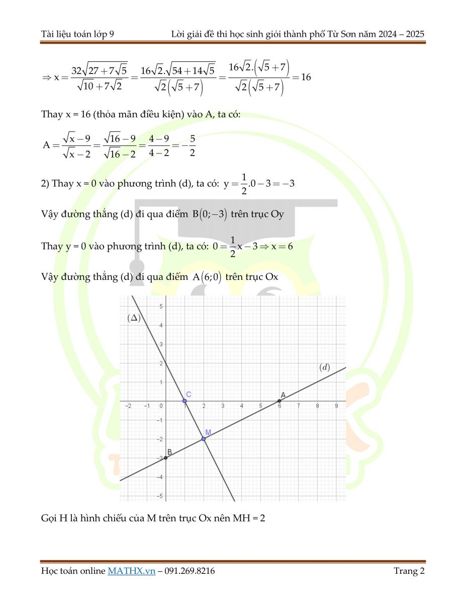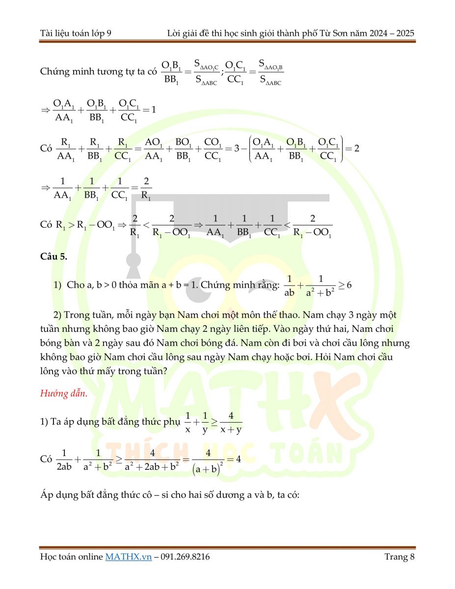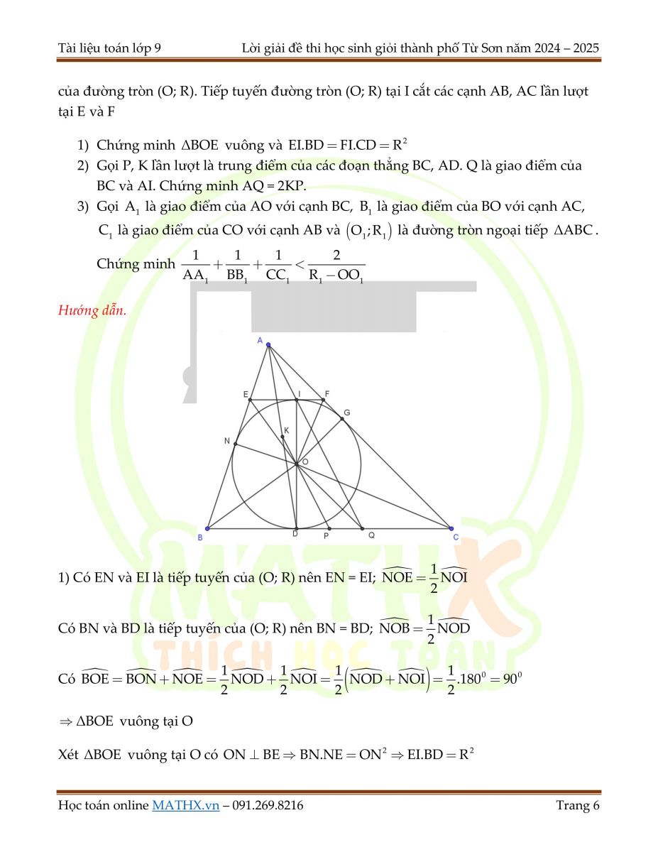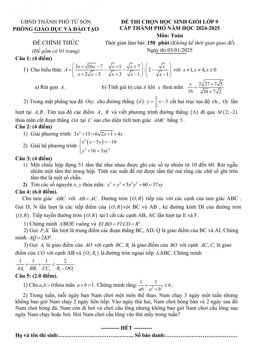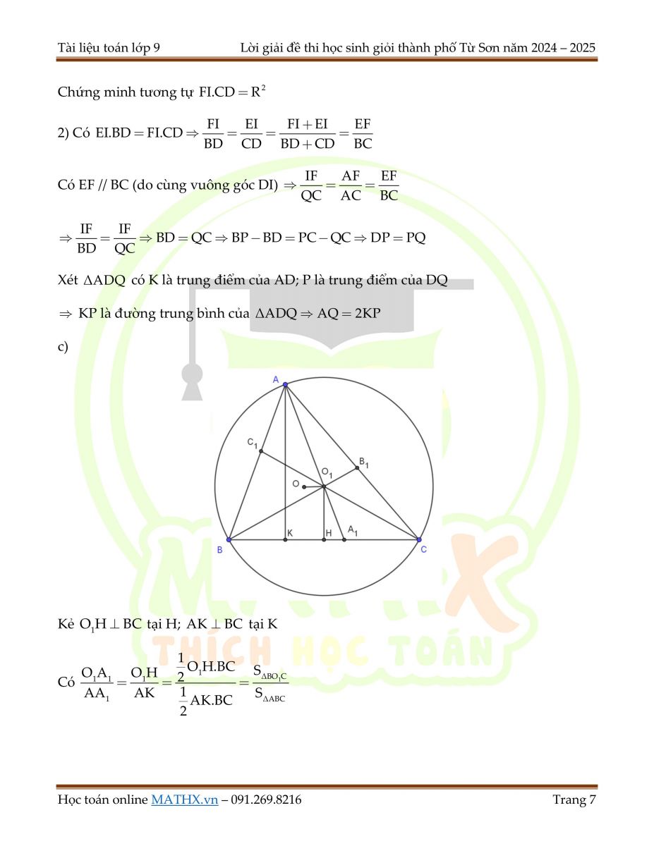 Lời giải đề thi chọn học sinh giỏi thành phố Từ Sơn năm 2024 - 2025: