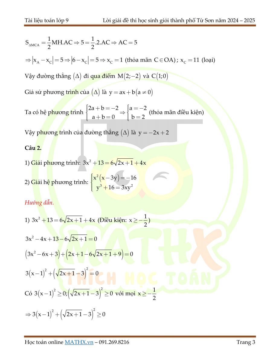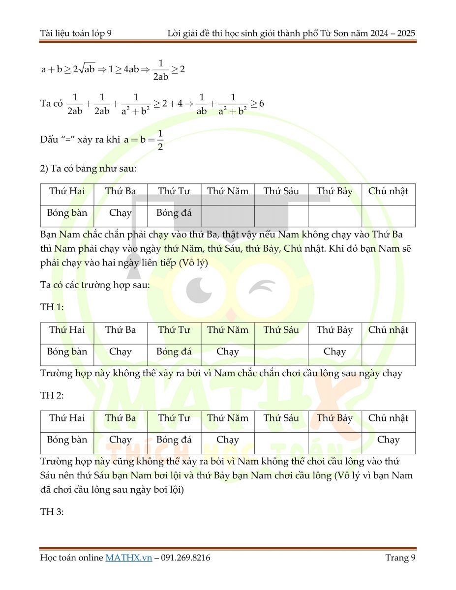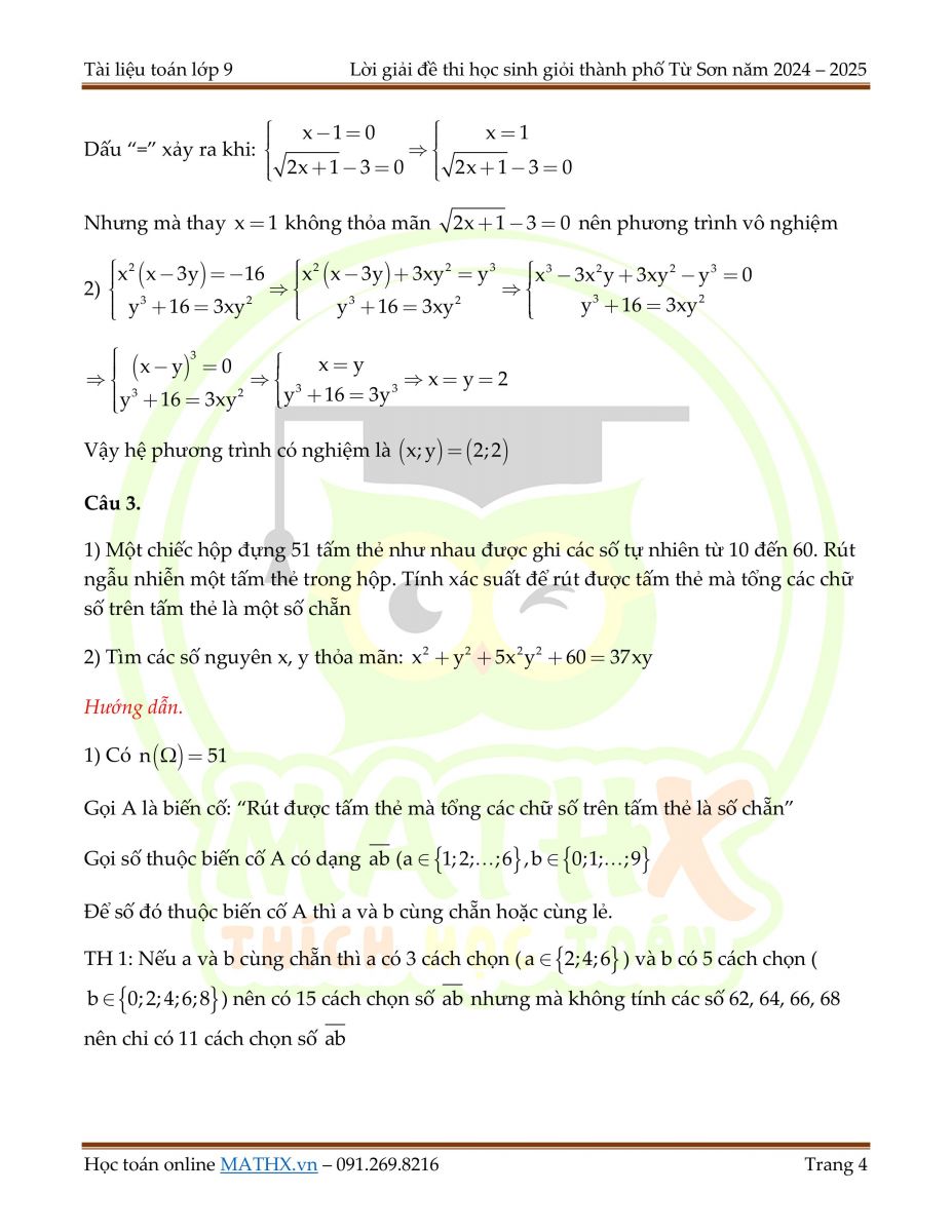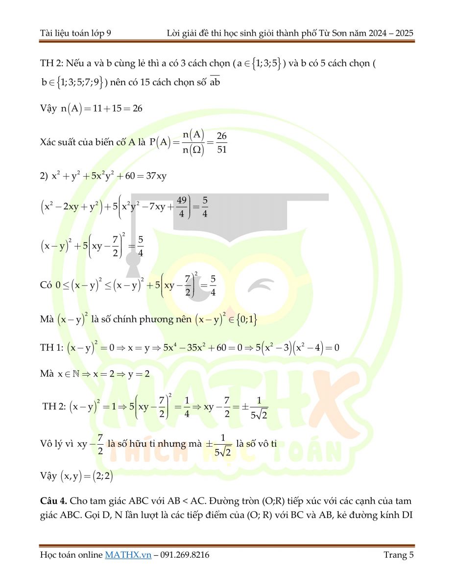 Lời giải đề thi chọn học sinh giỏi thành phố Từ Sơn năm 2024 - 2025: