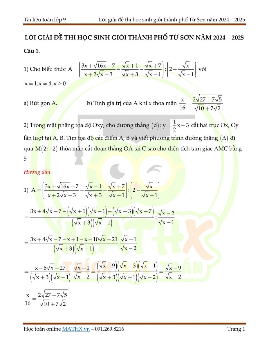 MATHX gửi đến quý phụ huynh và các em học sinh đề thi chọn học sinh giỏi thành phố Từ Sơn năm 2024 - 2025 kèm đáp án tham khảo.