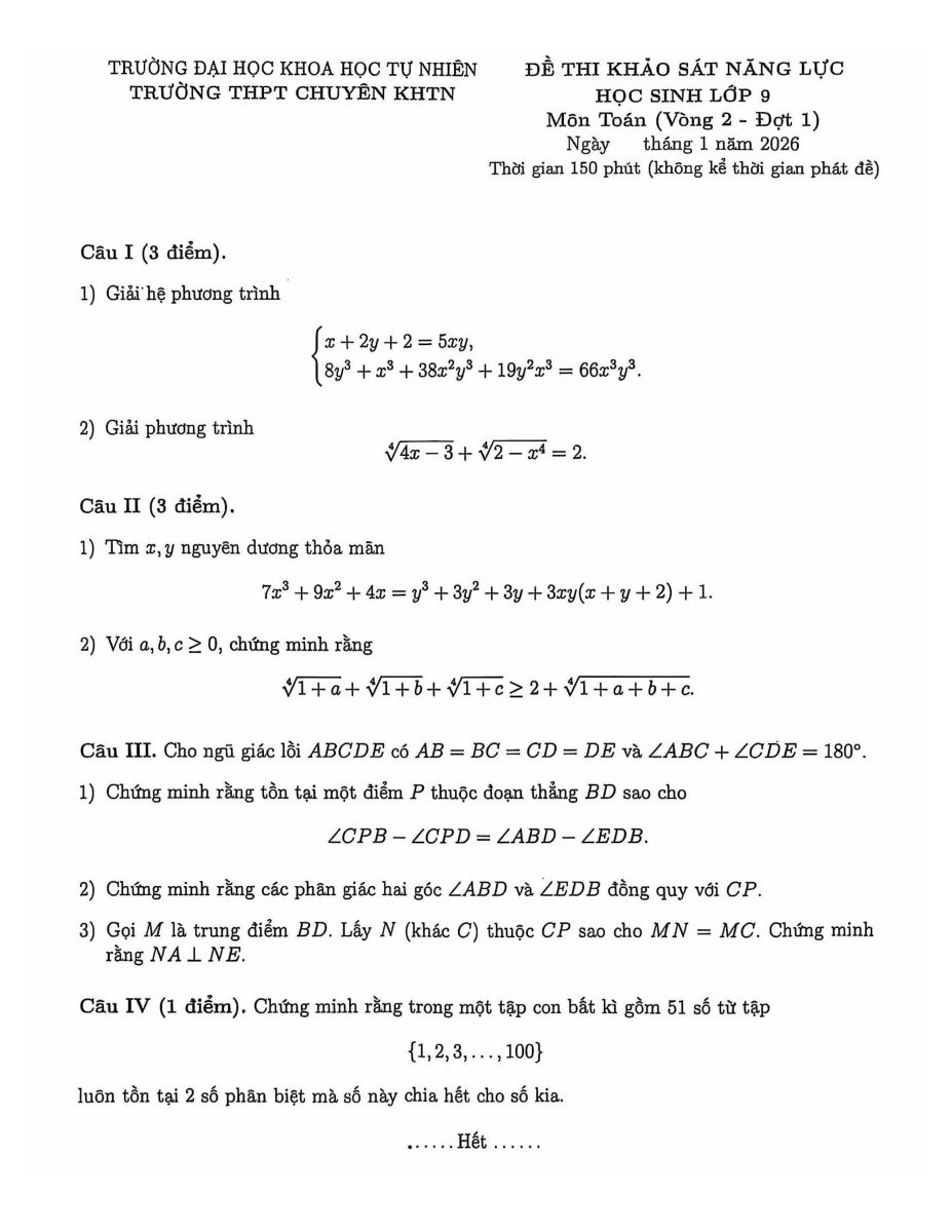 Lời giải đề thi khảo sát năng lực (Vòng 2 - Đợt 1), Trường THPT chuyên Khoa học Tự nhiên.